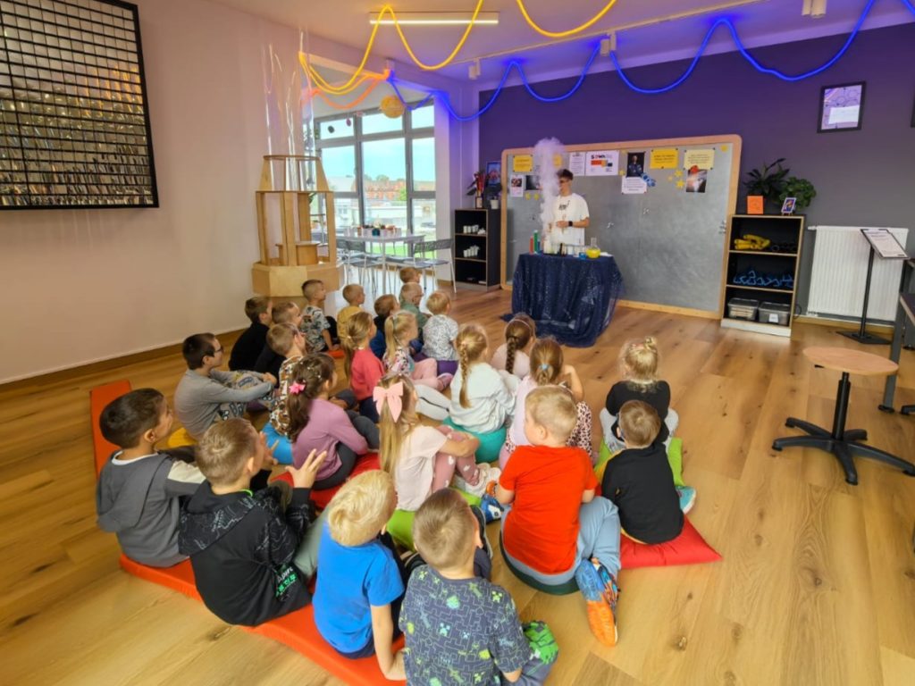 W dniu 29 września 2025r. obchodziliśmy w naszym przedszkolu Dzień Głośnego Czytania. Z tej okazji odwiedził naszą placówkę gość specjalny- aktor teatru im. W. Bogusławskiego w Kaliszu Pan Zbigniew Antoniewicz. Dzieci z trzech grup wiekowych miały okazję posłuchać żartobliwych wierszy, historii o wesołym rekinie oraz krótkiego opowiadania o Fryderyku Chopinie we wspaniałej interpretacji Pana Zbigniewa. Dzieci miały również możliwość …