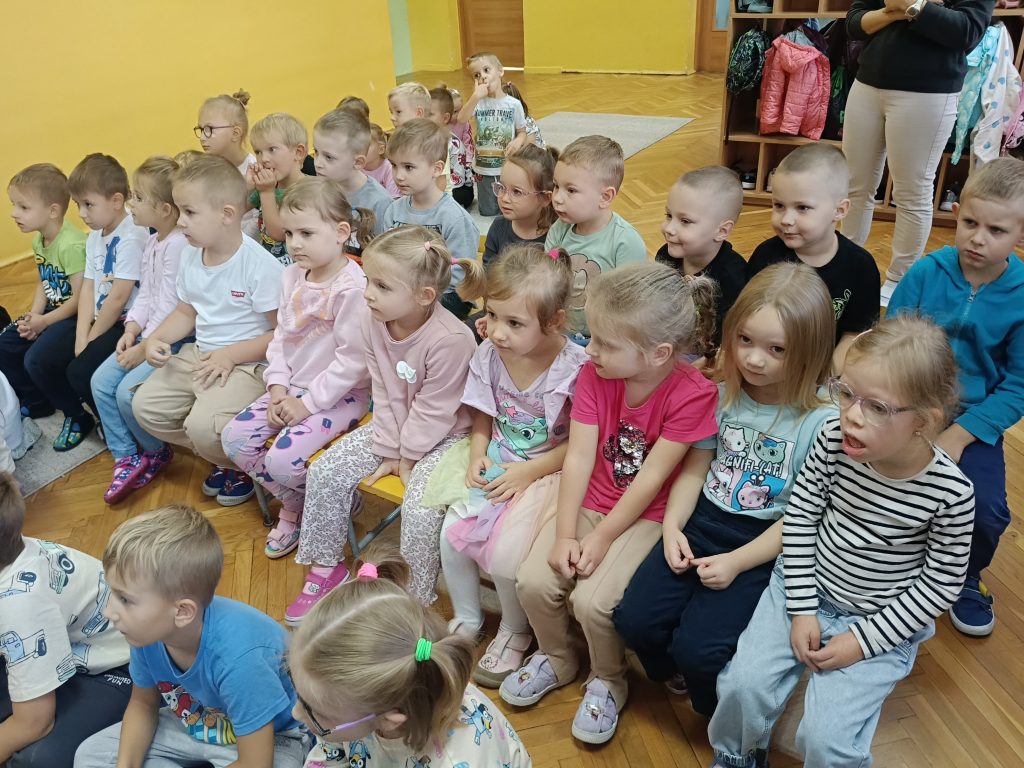W dniu 29 września 2025r. obchodziliśmy w naszym przedszkolu Dzień Głośnego Czytania. Z tej okazji odwiedził   naszą  placówkę gość specjalny- aktor  teatru im. W. Bogusławskiego w Kaliszu Pan Zbigniew Antoniewicz.  Dzieci z trzech grup wiekowych miały okazję posłuchać żartobliwych wierszy, historii o wesołym rekinie oraz krótkiego opowiadania o Fryderyku Chopinie we wspaniałej interpretacji Pana Zbigniewa. Dzieci miały również możliwość porozmawiać z aktorem o jego pracy w teatrze. Na zakończenie spotkania nasz gość został nagrodzony gromkimi brawami, ale również zaprosił dzieci wraz z nauczycielami do odwiedzenia kaliskiego teatru. Mamy nadzieję na ponowne spotkanie!