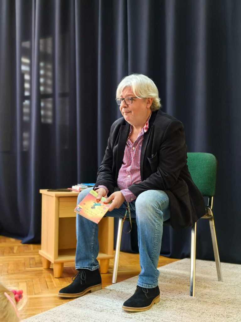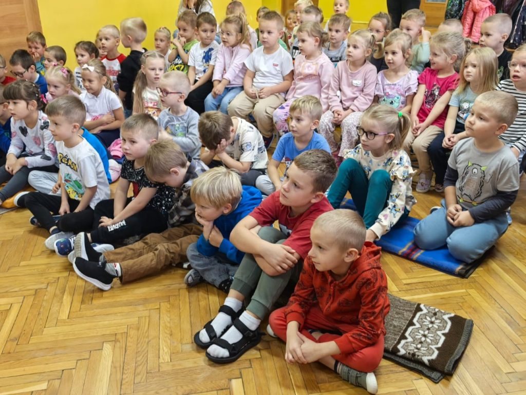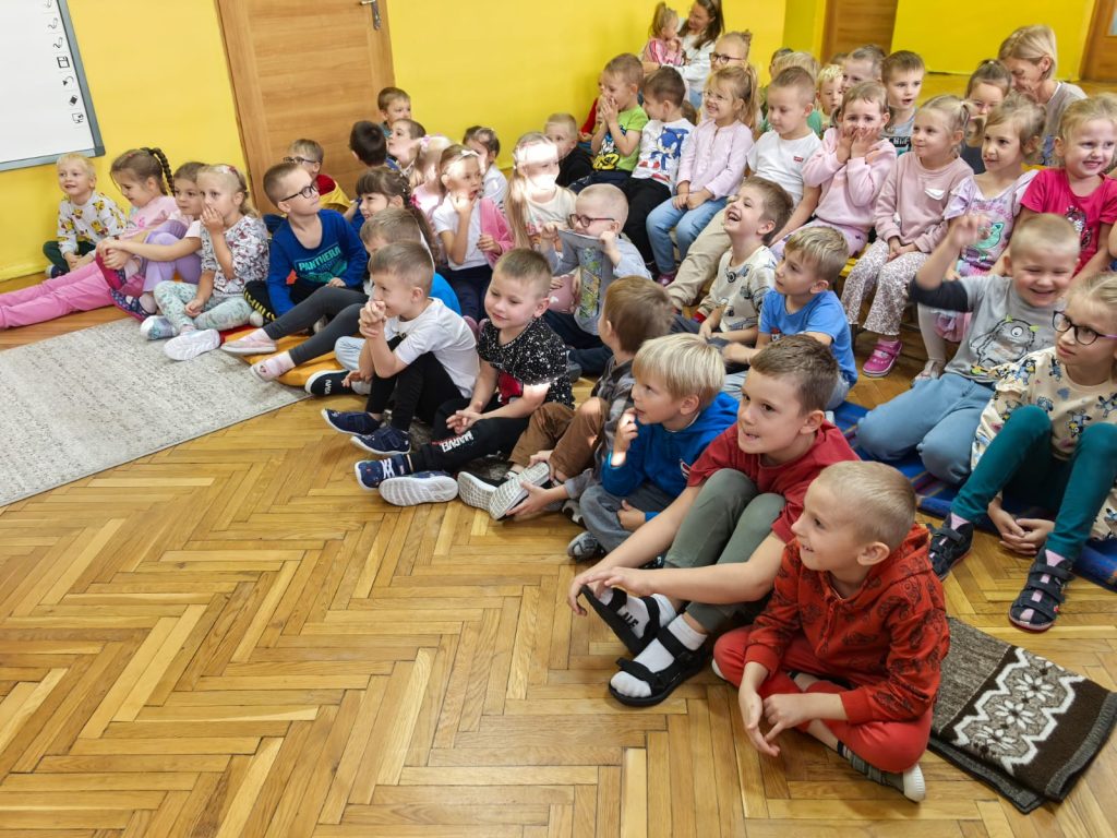 W dniu 29 września 2025r. obchodziliśmy w naszym przedszkolu Dzień Głośnego Czytania. Z tej okazji odwiedził naszą placówkę gość specjalny- aktor teatru im. W. Bogusławskiego w Kaliszu Pan Zbigniew Antoniewicz. Dzieci z trzech grup wiekowych miały okazję posłuchać żartobliwych wierszy, historii o wesołym rekinie oraz krótkiego opowiadania o Fryderyku Chopinie we wspaniałej interpretacji Pana Zbigniewa. Dzieci miały również możliwość porozmawiać z aktorem o jego pracy w teatrze. Na zakończenie spotkania nasz gość został nagrodzony gromkimi brawami, ale również zaprosił dzieci wraz z nauczycielami do odwiedzenia kaliskiego teatru. Mamy nadzieję na ponowne spotkanie!