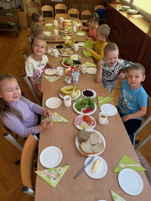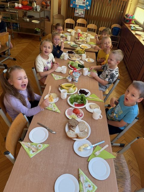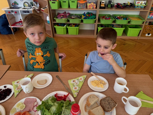 W piątek 7 listopada w naszym przedszkolu dzieci same mogły wybierać produkty, które zjadły na śniadanie. Kucharze przygotowali dużo różnych pyszności i wszyscy z apetytem zajadali swoje kanapki.