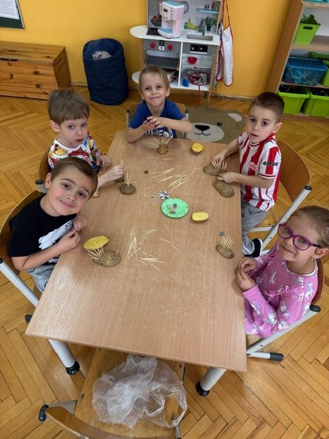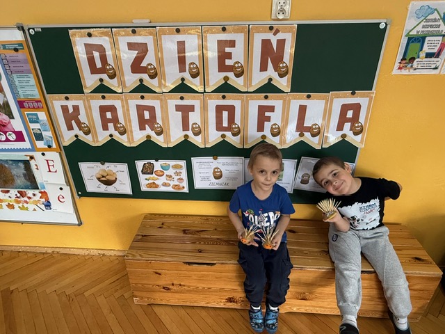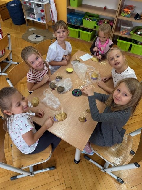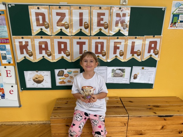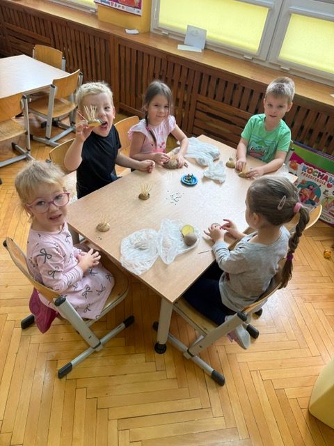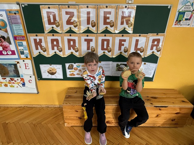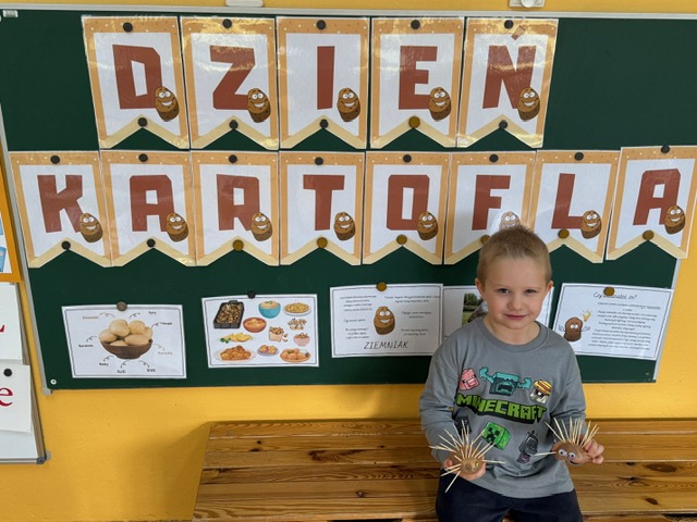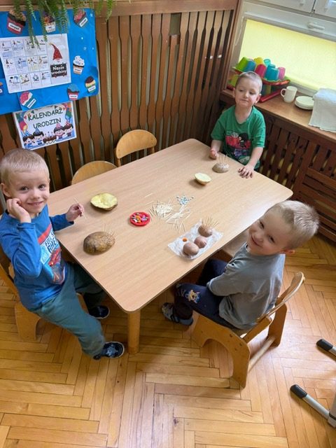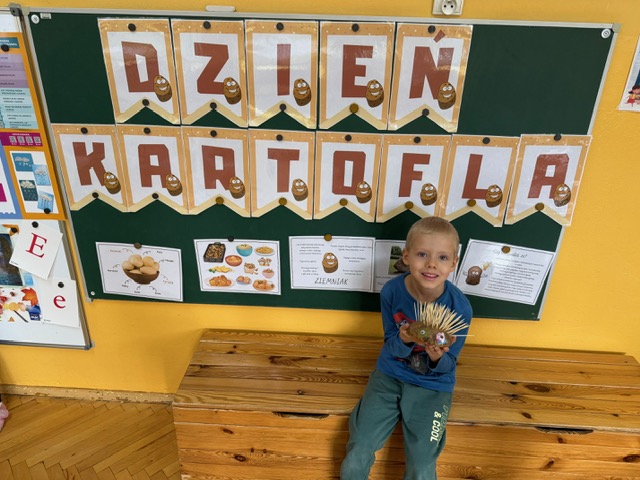 23 października obchodziliśmy święto pieczonego ziemniaka. Dzieci tego dnia miały mnóstwo atrakcji. Na początek wysłuchały bajki o Wróbelku Elemelku. Następnie w sali odbyły się gry i zabawy ruchowe z ziemniakami. Na naszym przedszkolnym korytarzu stworzono wystawę ziemniaków cudaków wykonanych przez dzieci.