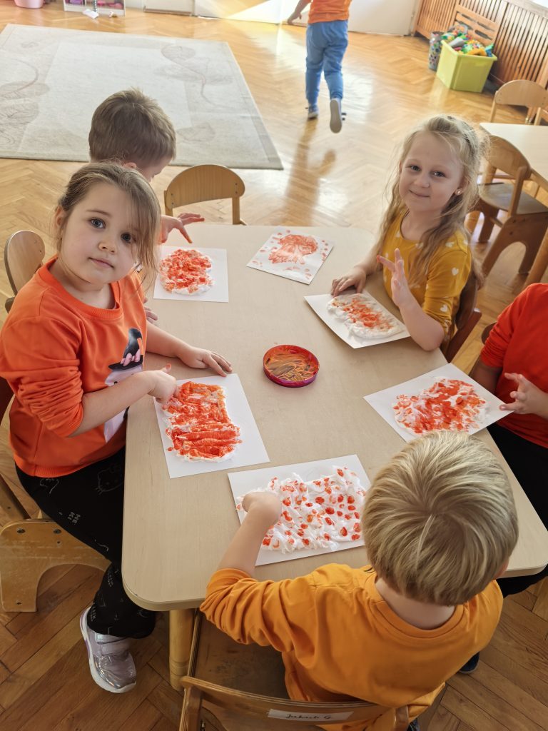 Dzieci poznały różne rodzaje dyń, dowiedziały się, do czego można wykorzystać dynię w kuchni. Brały udział w dyniowych zabawach językowych, ruchowych i plastycznych.